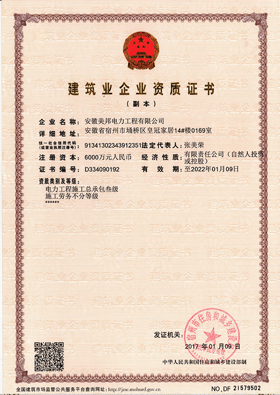 安徽美邦電力工程有限公司成立于2015年6月,坐落于宿州高新區(qū)。是一家從事電力工程設(shè)計(jì)、電力設(shè)備生產(chǎn)、電力工程施工、電力托管服務(wù)、電力工程搶險(xiǎn)為一體的一站式綜合性公司。公司現(xiàn)有各類(lèi)專(zhuān)業(yè)技術(shù)職稱(chēng)的管理人員及大批從事電力工程專(zhuān)業(yè)施…